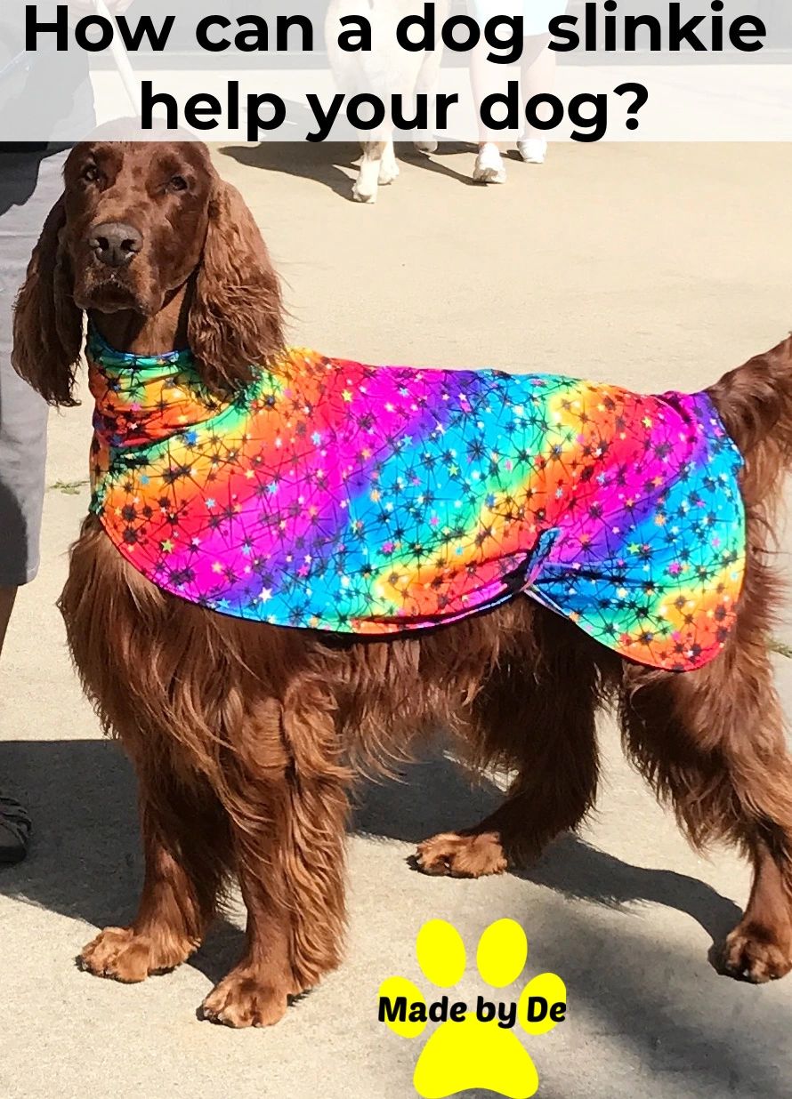 A dog coat can provide the same type of effect if it's applied snugly. When you and your dog find yourself in an anxiety-producing situation, you can put a cool coat or a slinkie or even a winter coat on and fasten it securely around the ribcage.